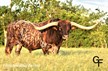 Deceased 6-23-2022. Drag Iron did a phenomenal job at Glendenning Farms as he not only added the structure of his over one-ton frame, but also added the beautiful butterscotch brindle coloring as well as his long massive swooping horns. He was a GENTLE GIANT with an amazing disposition.