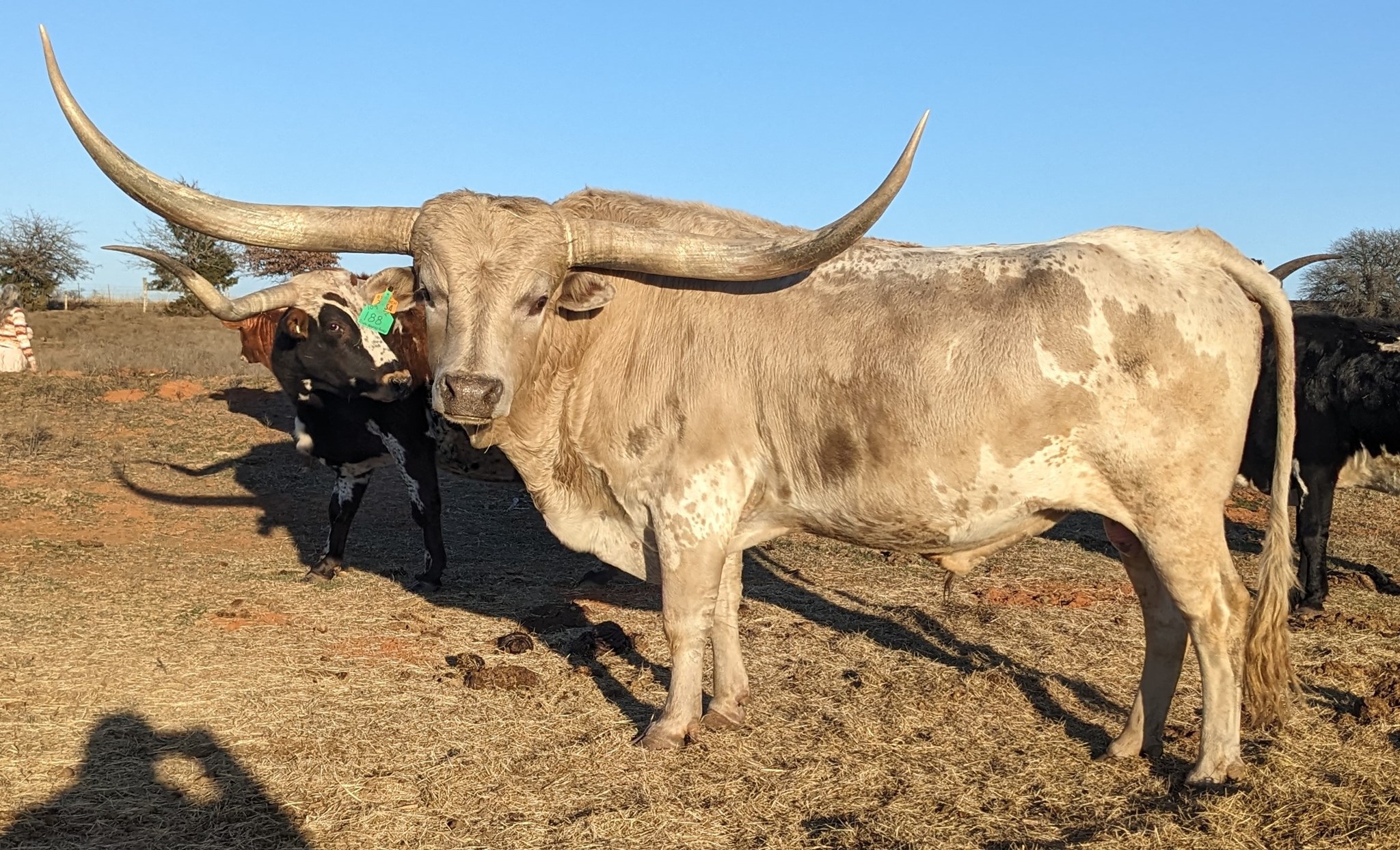 Long, tall young grulla bull with outstanding horn growth and a stacked pedigree that includes 12 or more 80" TTT animals. AI Certified, Heifer sexed semen available at $250 per straw. Conventional flush quality semen available $100 per straw. Partnership Opportunities available - call Nik @ 405-230-0848